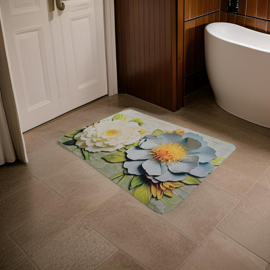 5D Flower Printed Bathroom Mat Door Mat, Rubber Non-Slip Quick Dry Rugs